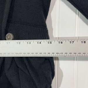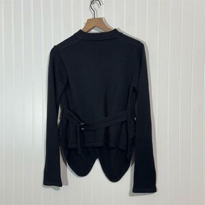 Step up your layering game with this Miss Me black military-inspired knit jacket in size small. This structured yet cozy piece features a double-breasted button front detail, flap pockets with button accents, and a waist belt at the back for a flattering, cinched fit. The asymmetrical hemline adds an edgy touch, making this a versatile piece that works for dark academia, cottage noir, steampunk, or edgy business casual looks.