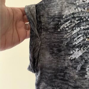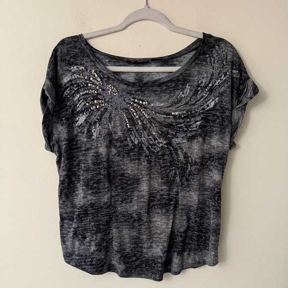 Miss Me Black and Gray Cap Sleeve Embellished Blouse, size S
