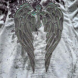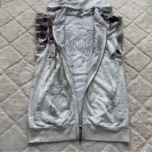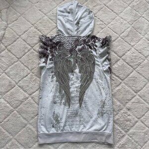 Miss Me | Bling Angel Wings Front Zip Sleeveless Hoodie | Size Medium