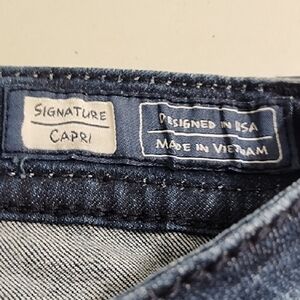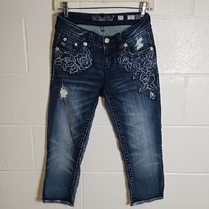 Miss Me Blue Ankle Cropped Capri Stretch Jeans with Embroidery Raw Hem