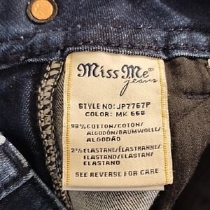 These Miss Me blue ankle cropped jeans showcase a beautiful floral embroidery on the front, enhancing the distressed denim's stylish appeal. The raw hem adds a contemporary touch, making them ideal for casual outings. Rhinestone & Silver Details. Very cute