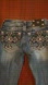 These Miss Me jeans feature a classic flare and wide leg design with a medium wash that gives them a stylish worn-in look. The denim showcases a mix of light and medium blue tones, complemented by contrasting stitching along the seams.