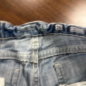 Stylish blue jean shorts. Distressed design. Classic five-pocket style. Perfect for casual wear.