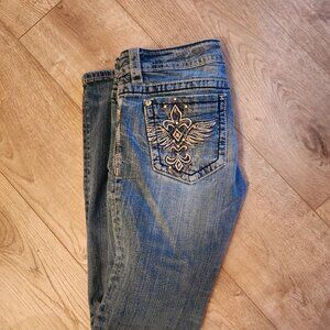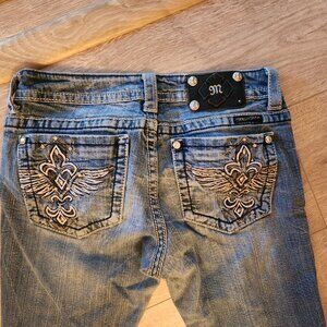 J30 Pre-owned Miss Me jeans embellished back pockets, mid- rise, silver studs, embroidered