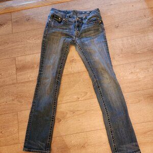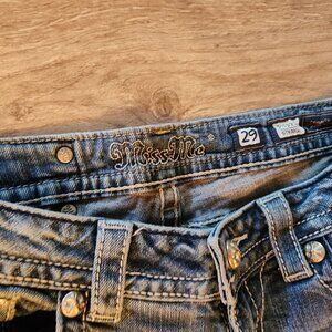 Miss Me Blue Jeans Embellished Silver Mid-Rise Straight Leg Size 29