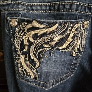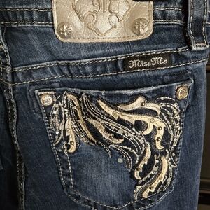 Miss Me Blue Jeans with Silver Embroidery