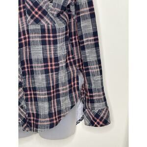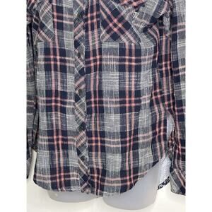 Miss Me Blue Plaid Mixed Media Button Up Long Sleeve Top Small Boho Western