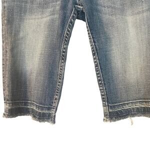 Miss Me Blue Seville Fringe Bermuda Stripe Detail Denim Jean Shorts Women Sz 27