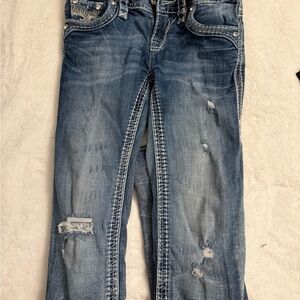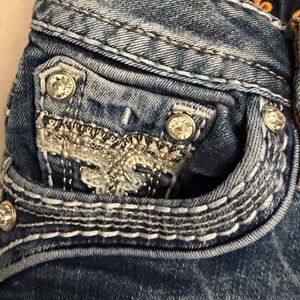 Miss Me Blue Straight Leg Jeans with Silver Embellishments