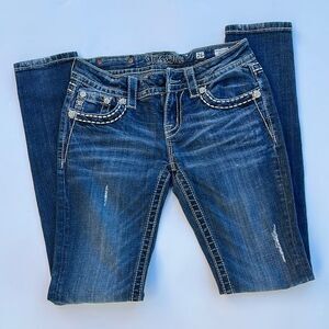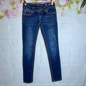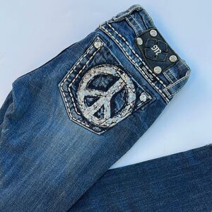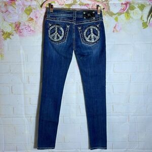 Miss Me Blue Skinny Jeans with Embroidered Peace Design