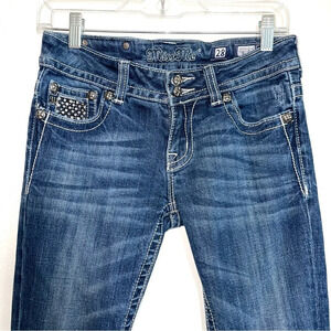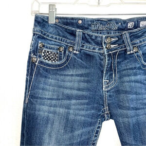 Miss Me Boot Cut Dark Wash Low Rise Rhinestone Pocket Jeans 28 Women’s