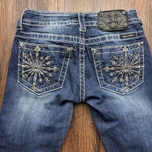 Miss Me Boot Cut Jeans Rhinestone Snowflake Dark Wash Women’s Size 25