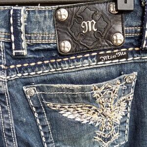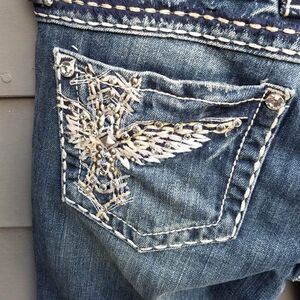 Miss Me Boot Cut Jeans With Wings on Pockets Size 27