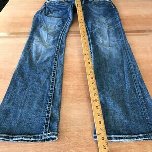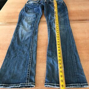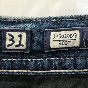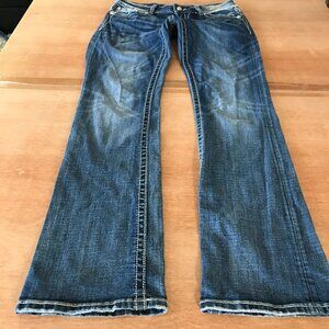 Miss Me Bootcut Jeans Women 31 Blue Low Rise Rhinestone Flap Pocket Thick Stitch 17599