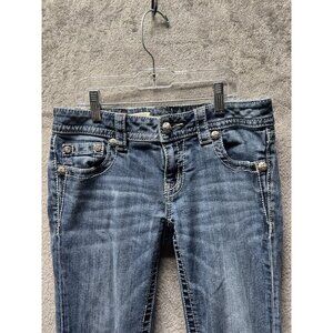 Miss Me Bootcut Women’s Jeans Size 27 Rhinestones Y2K fleur-de-lis Biker