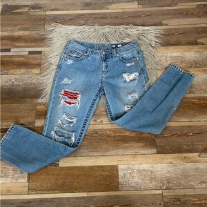 Miss Me Boyfriend Ankle Women's Jeans Size 28 Distressed Patchwork Artsy