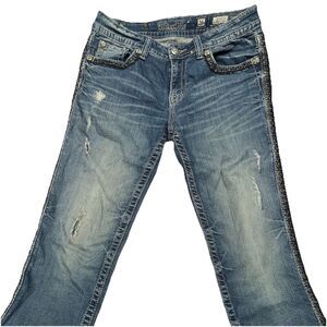 Miss Me Boyfriend Capri JB5660P3 Embroidery Bling Flap Pockets Women’s Size 26