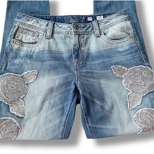 Miss Me Boyfriend Light Wash Ankle Floral Embroidered Jeans Women’s Size 27 Style No. JB7665A