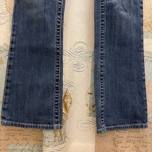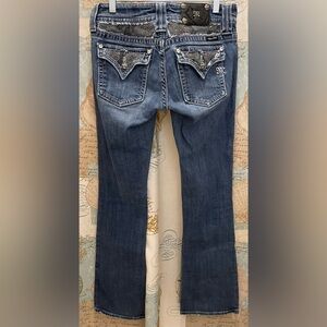 Miss Me women’s denim blue jeans available in size 29. Boot cut, low rise, slight distressing as these are gently pre-loved ships from a smoke free home. Perfect for rodeos, concerts, cowgirl, or any casual wear.