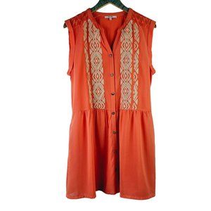 Miss Me Button Front Embroidered Sheath Pocket Sleeveless Dress, Sz M