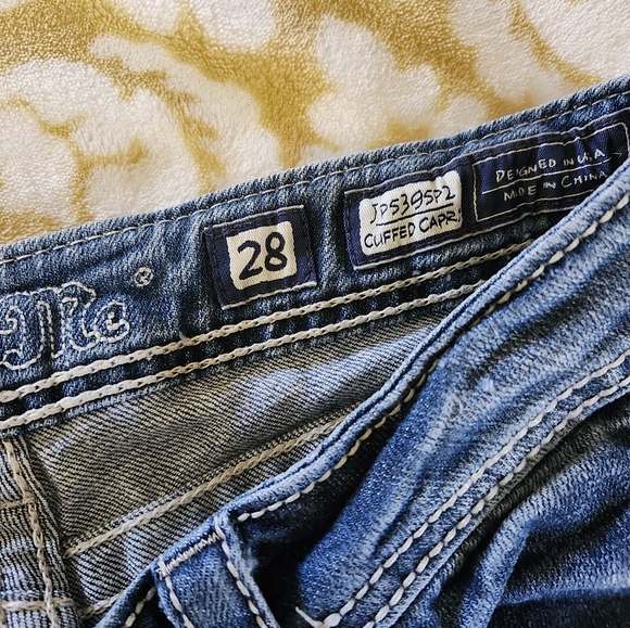 Miss Me Capri, size 28. Inseam 22. They are stretch, 2%