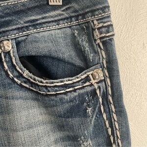 Miss Me Capri Jeans Womens 31 Mid Rise Embellished flap Pockets Faded Distressed
