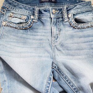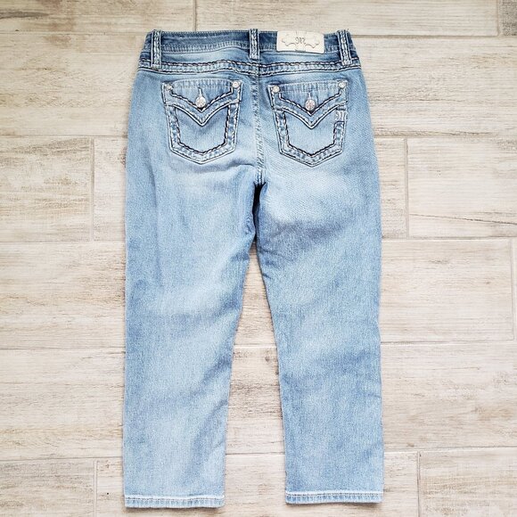 Miss Me Capri Jeans Women's Mid Rise Chunky Metallic Seams Light Wash.