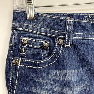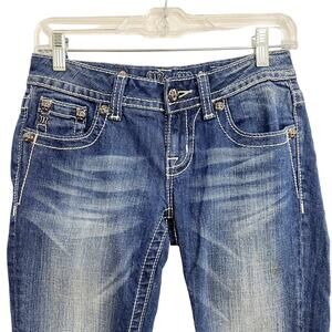 Miss Me Capri Jeans Women's Size 26 Blue Denim White Stitch Rhinestone JP6048P5