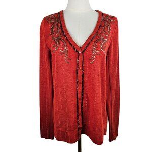 Miss Me Cardigan Medium Rust Orange Mixed Media Embellished Boho