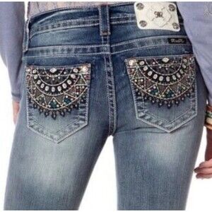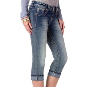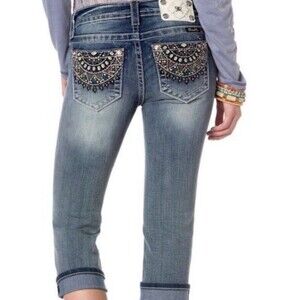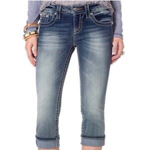 Miss Me Carnival Love Cuffed Capri Jeans Mid-rise Rhinestone Embroidered Bead 31