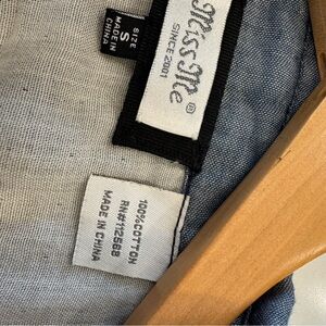 Miss Me Chambray Embellished Pearl Snap Short Sleeve Western Top / small