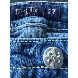 Keywords: Miss Me jeans, Chloe bootcut, embellished jeans, size 27 jeans, low rise jeans, denim jeans, Y2K fashion, rhinestone jeans, bootcut denim, designer jeans, western wear, cowgirl jeans