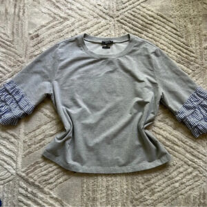Features: Miss Me brand, tiered sleeves with a striped print, spandex cotton blend, size medium, no flaws!