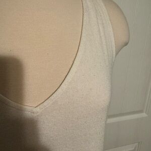 Elevate your wardrobe with this versatile white sleeveless top. Perfect for layering or wearing on its own, this top offers a chic and comfortable fit. It has a nice lace back. In good relived condition. Sleep got piling on the front.