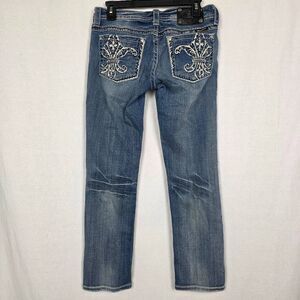 Miss Me Cropped Jeans 29 Clayton Fleur de Lis Bling