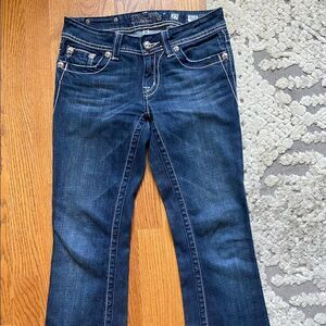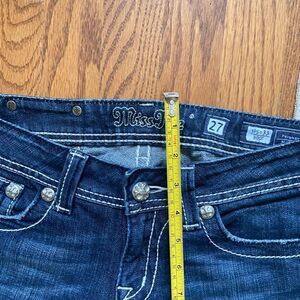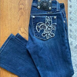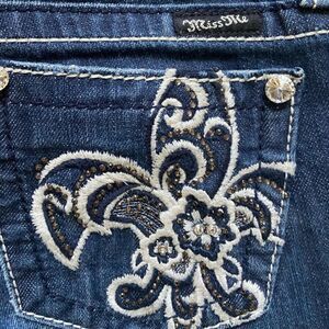 Miss Me Cropped Jeans Size 27 Embellished BLING Thick Stitch Stretch Boot Women
