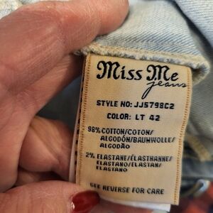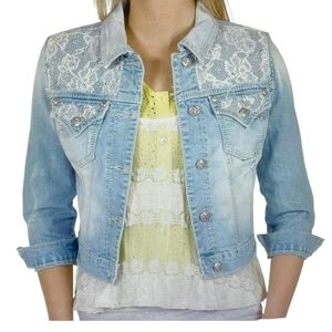 Miss Me Cropped Stone Wash Denim Med Jacket Rhinestones and Lace