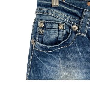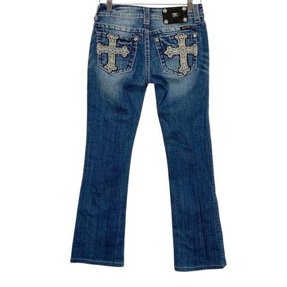 Gently pre-loved Miss Me Cross Embellished Boot Cut Jeans Size 27