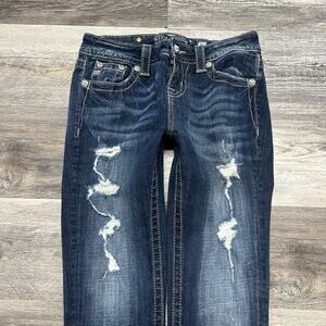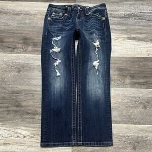 Miss Me Curvy Cropped Jeans Mid Rise Dark Wash Blue Women 26 McBling y2k 2000s