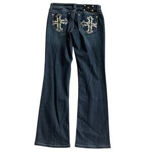 Miss Me, Dark Blue, Jeweled Cross Design, Boot Cut Jeans- 31