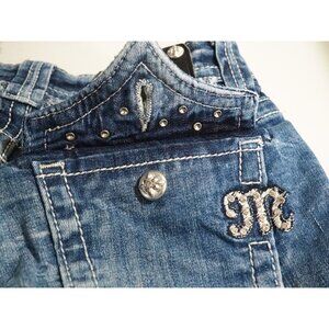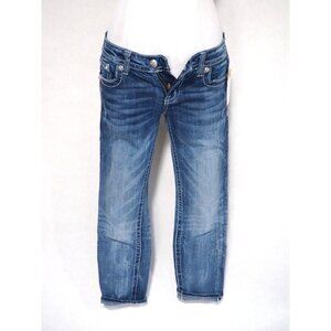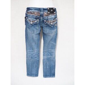 Miss Me Dark Blue Medium Wash Denim Jewel Pocket Capri Jeans, Size 26