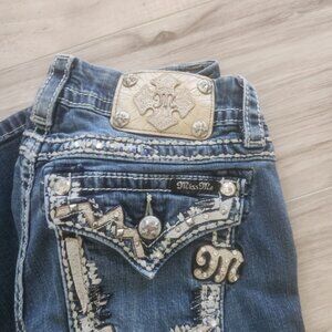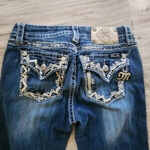 Miss Me Dark Blue Mid Rise Jeans with Silver Accents