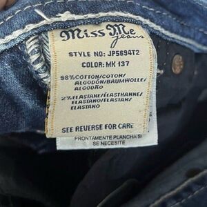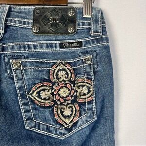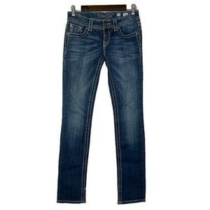 Miss Me Dark Wash Baroque Cross Embellished Straight Leg Jeans 25