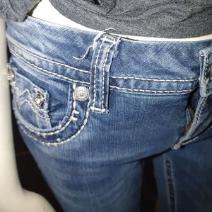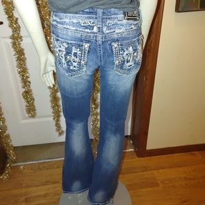 Miss Me Denim Brand Signature Rse Boot Jeans Size 28 (2001). They have shiny buttons on the pockets. They have been worn and are in great shape. Ask any question you need to!