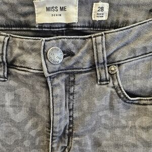 Miss Me Denim Gray Leopard Mid Rise Ankle Skinny Stretch Jeans