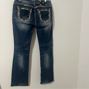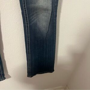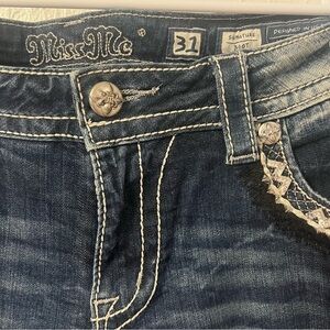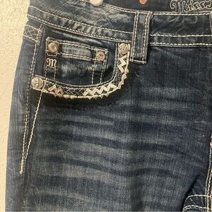 Miss Me Denim Size 31 Signature Boot Blue Stretch Distressed Thick Stitch Jeans