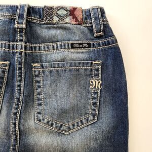 Miss Me denim skirt with colorful embroidered trim/hem.