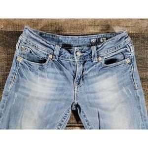 Miss Me Distressed Boot Cut Rhinestone Denim Jeans 29x34