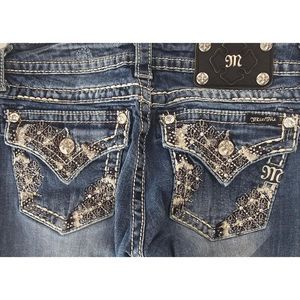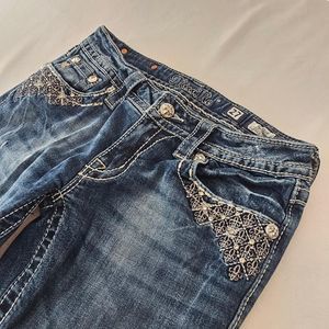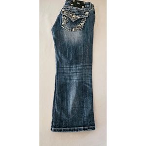 Miss Me Distressed Embellished Denim Capri Jeans Women's Size 27 EUC-BLING