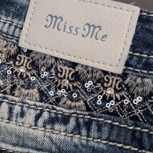 Miss Me - Distressed blue wash with rhinstones Size 27
